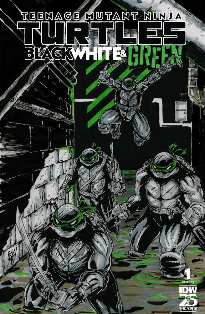 TMNT BLACK WHITE & GREEN #1 EXCLUSIVE VARIANT COVER Edward Kraatz II